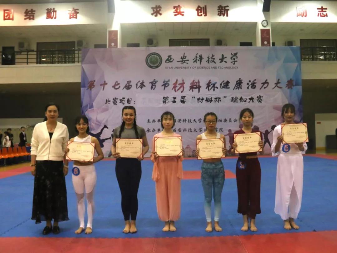 4月22日晚,365体育官方唯一入口第十七届体育节“材料杯”第三届瑜伽比赛于临潼校区骊山校园体育馆圆满落幕,本次赛事包括来自9个学院的瑜伽队,共有“团体赛、单人赛、双人赛”等三个项目。出席本次比赛的嘉宾有体育部党委书记吕宏艳,体育部主任陈俊杰,我院党委副书记马婧智闻,副院长朱明等。本次比赛评委特邀到岳海侠、李东颖、刘伟、王晓丽、张艳青、郑瑞娜、刘婷婷等。